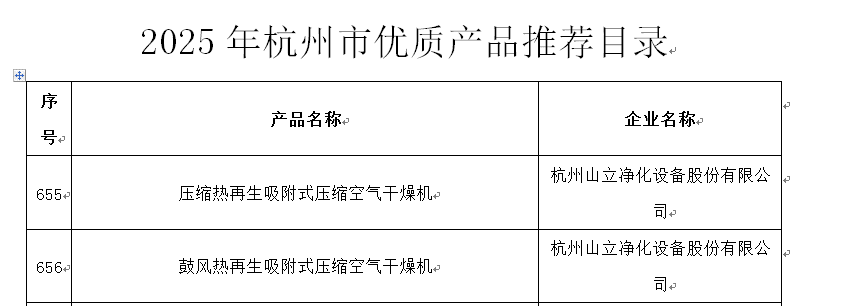 近日,杭州市经济和信息化局(杭州市数字经济局)公布了《2025年杭州市优质产品推荐目录》,杭州710公海赌赌船官网欢迎您净化设备股份有限公司两项产品:压缩热再生吸附式压缩空气干燥机、鼓风热再生吸附式压缩空气干燥机成功入选。
